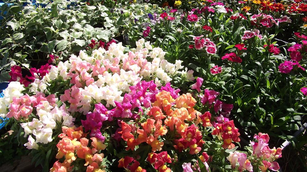ダイアンサス、キンギョソウ、ビオラ、その他の草花などの花苗