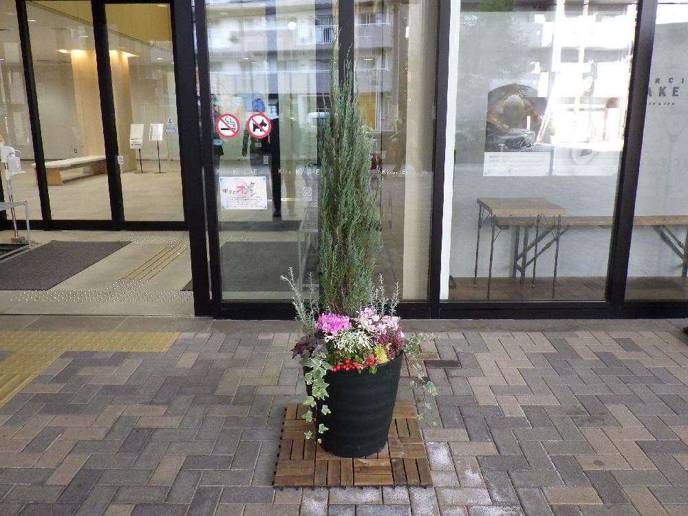 クリスマスカラーの寄せ植えを「ロクハ公園」から「キラリエ草津」へ…