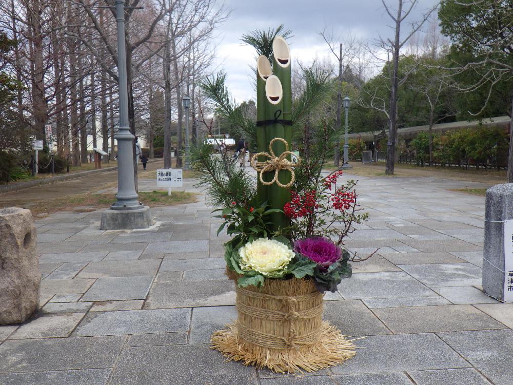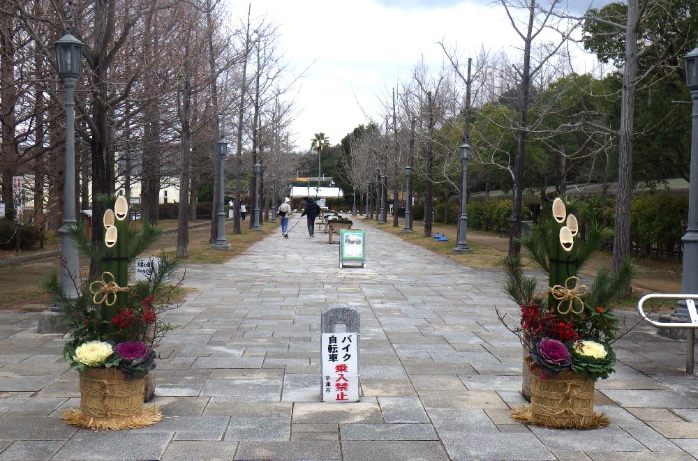 公園事務所職員の植栽チームによって作られたこだわりいっぱいの門松! |