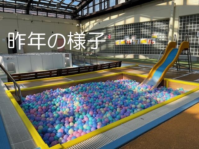 ロクハ公園室内幼児プールの一角に、昨年より若干広くして、ボールプールを設置します。