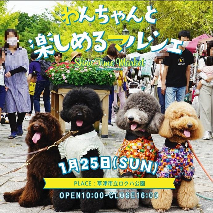 1月25日(日)10時~16時、スロータイムマーケットによるイベント「わんちゃんと楽しめるマルシェ」が開催されます。